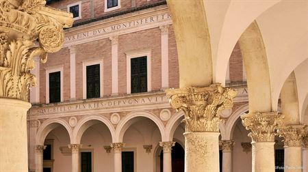 The Courtyard of the Ducal Palace in Urbino, or Courtyard of Honour is the centerpiece of the Renaissance palace of Federico da Montefeltro, built by Luciano Laurana between 1466 and 1472. For the sober decoration inspired by the past, the rhythmic alternation between full and empty and numerous architectural features, the courtyard is one of the emblematic achievements of perspective culture of Urbino Renaissance.